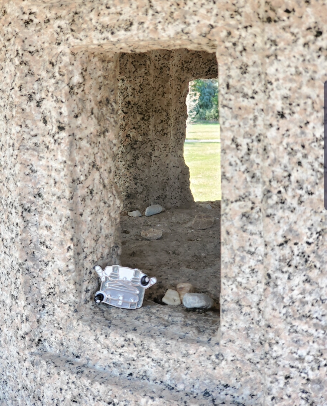 The Japanese Peace Garden is a great place to obtain zen. Thus, Zen Ninja doesn't wish for anyone who may be enjoying the peacefulness of the garden to be disturbed; therefore, he has hidden his backpack outside the garden gates. You need only peer through the windows of the ishidoro, day or night, to find what you seek. However, if it is zen you seek, you'll need to visit between sunrise and sunset.